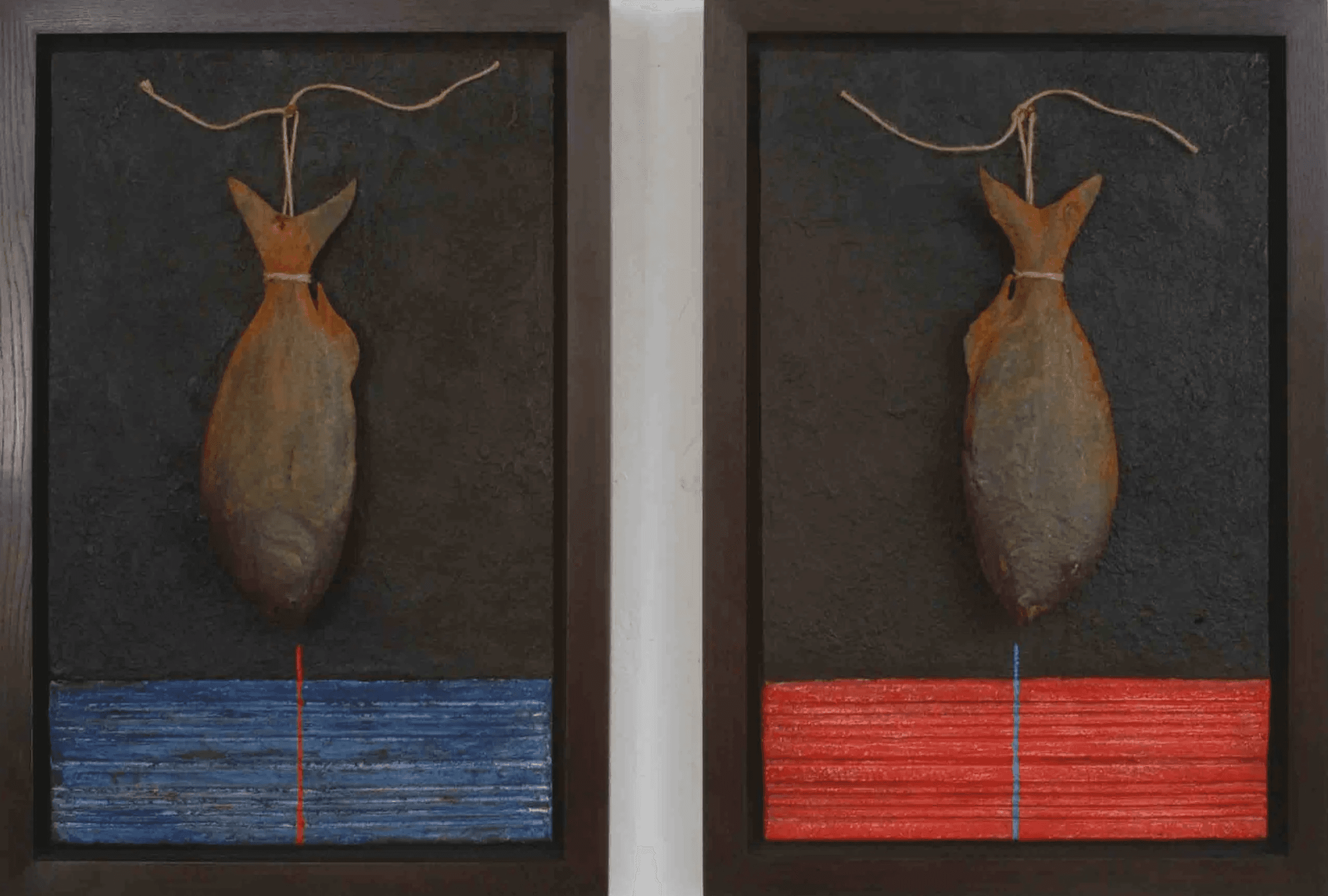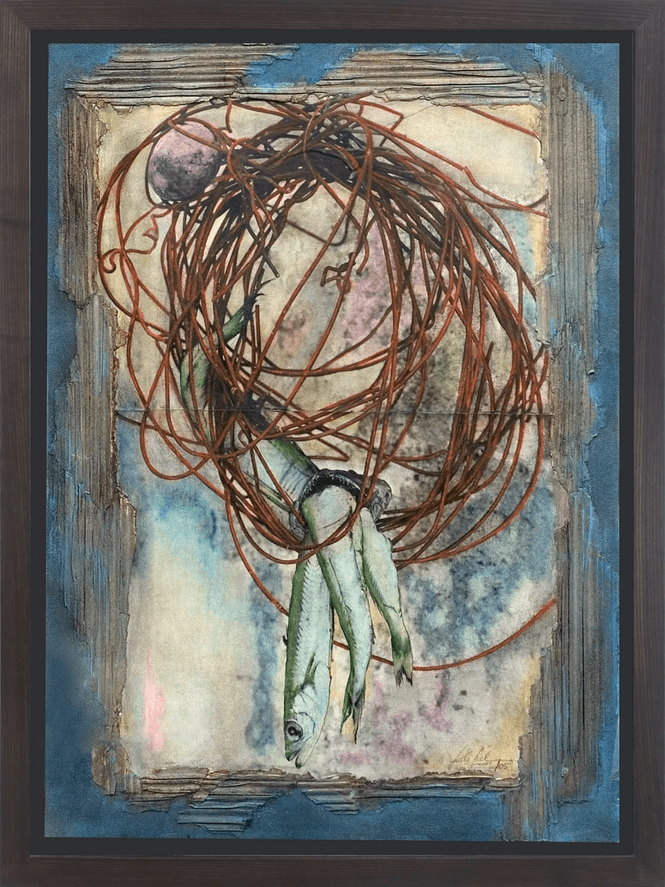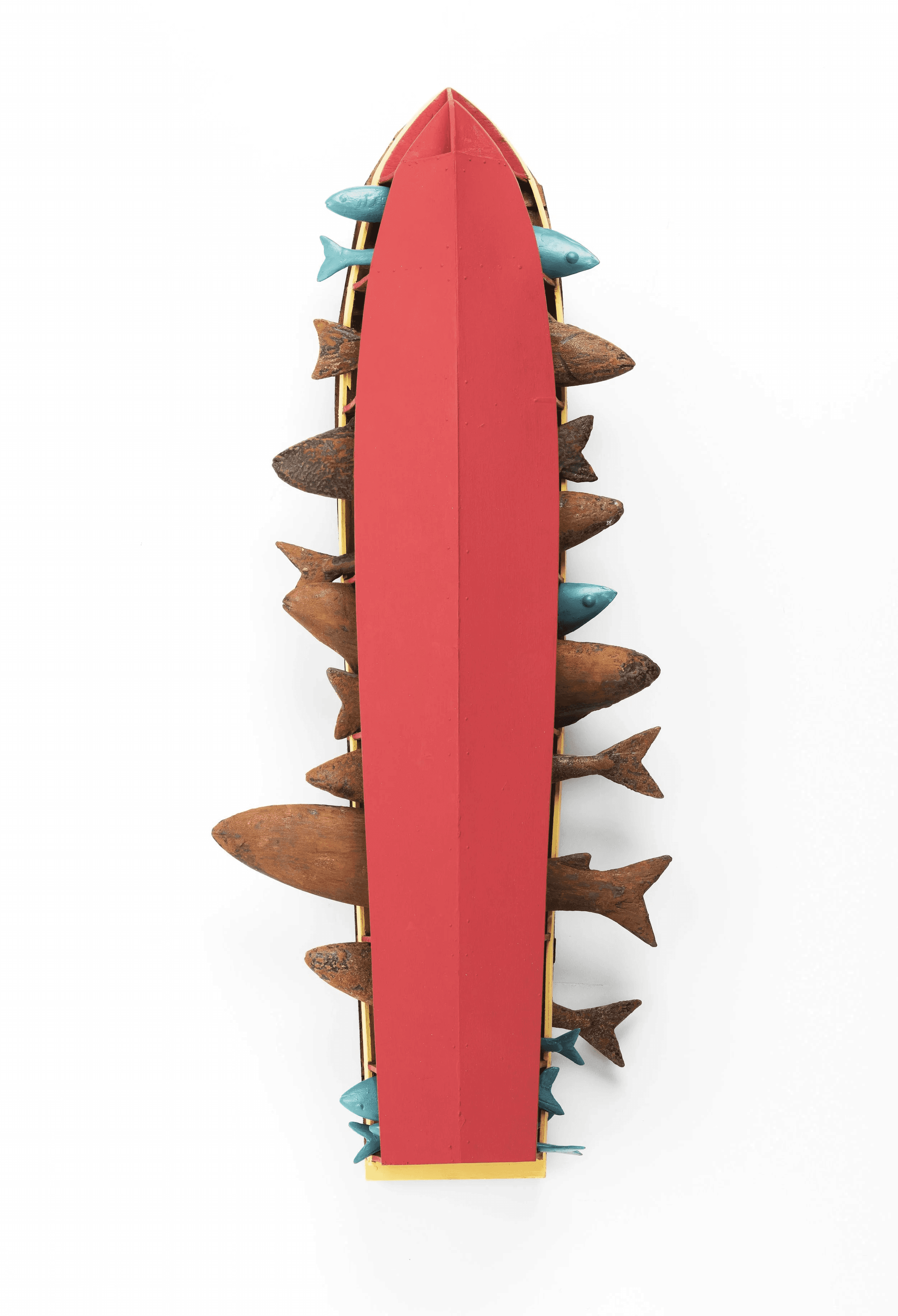 Medium: Metal pipe, wooden base , hand coloured resin fish