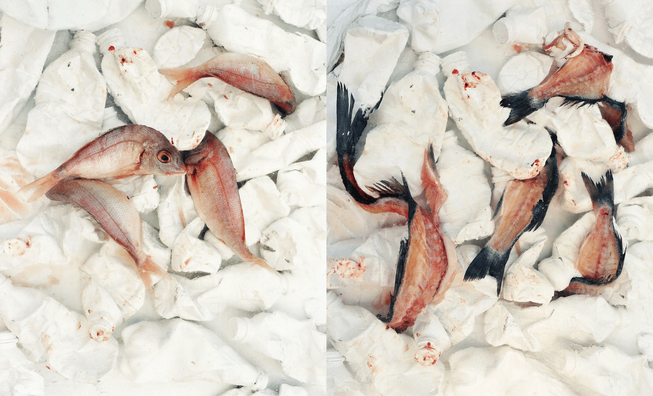 In particular The Thin Blue Line – here Lieberman plays with the British expression, suggesting an outnumbered police force that faces the mountainous task of policing the oceans. Comparatively, The Thin Red Line catches a fish in the light of a laser, moments before a shot is fired. Both images represent human destruction within our seas.