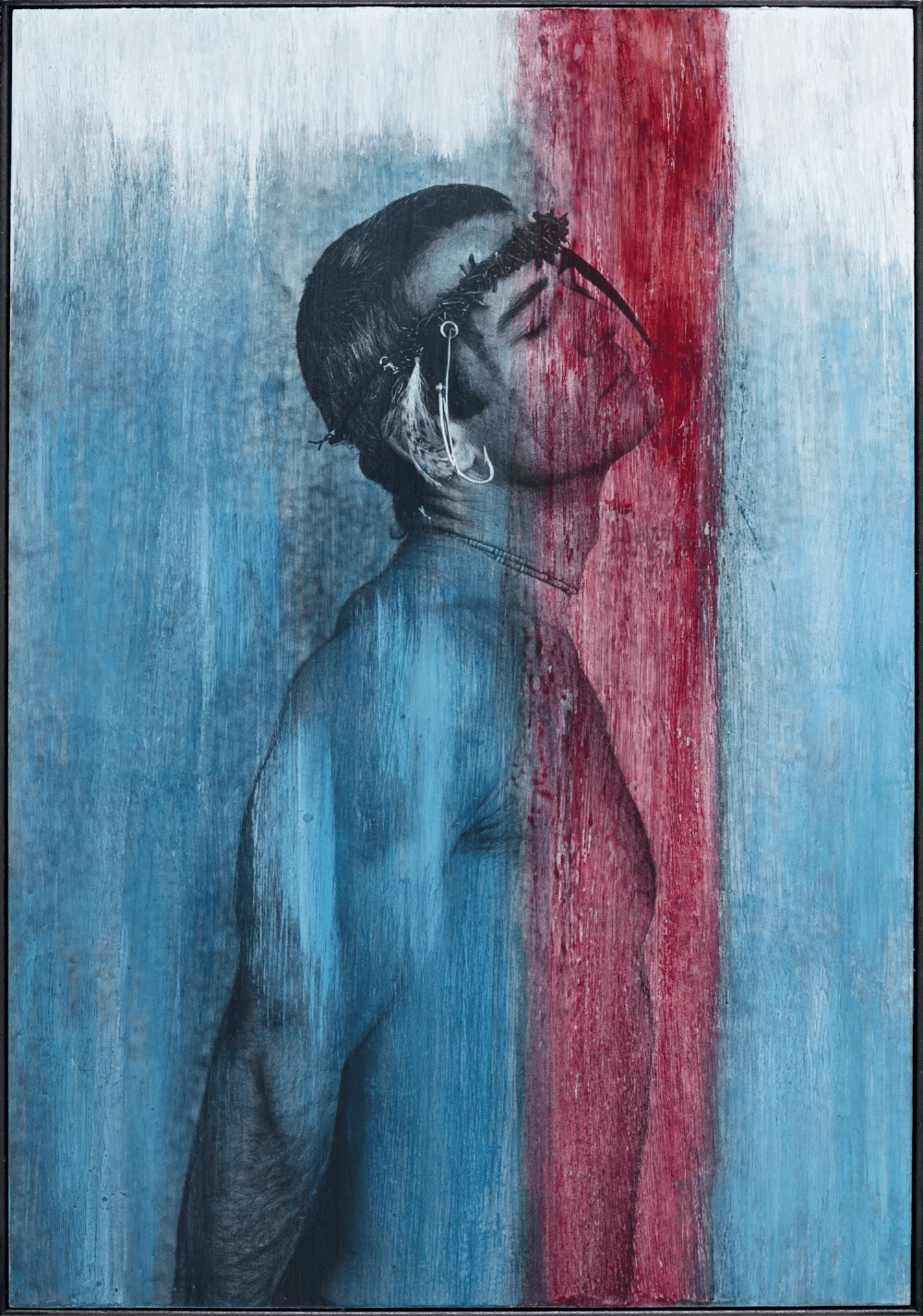 Medium: Colour film onto Hahnemuhle Paper red ink and fish blood , mixed media