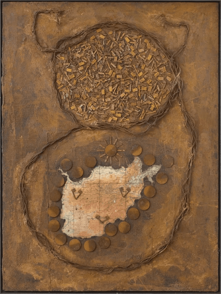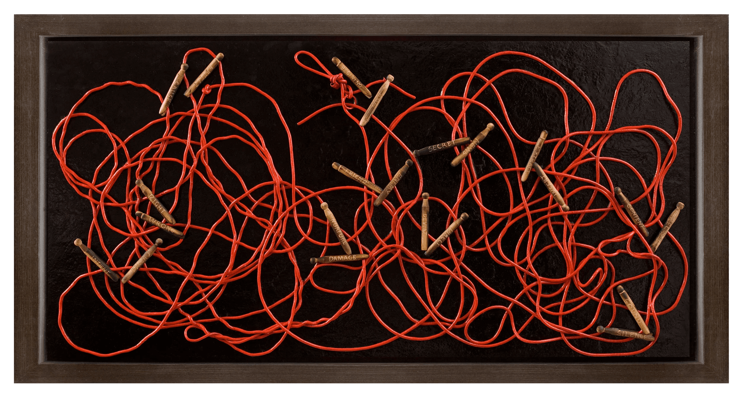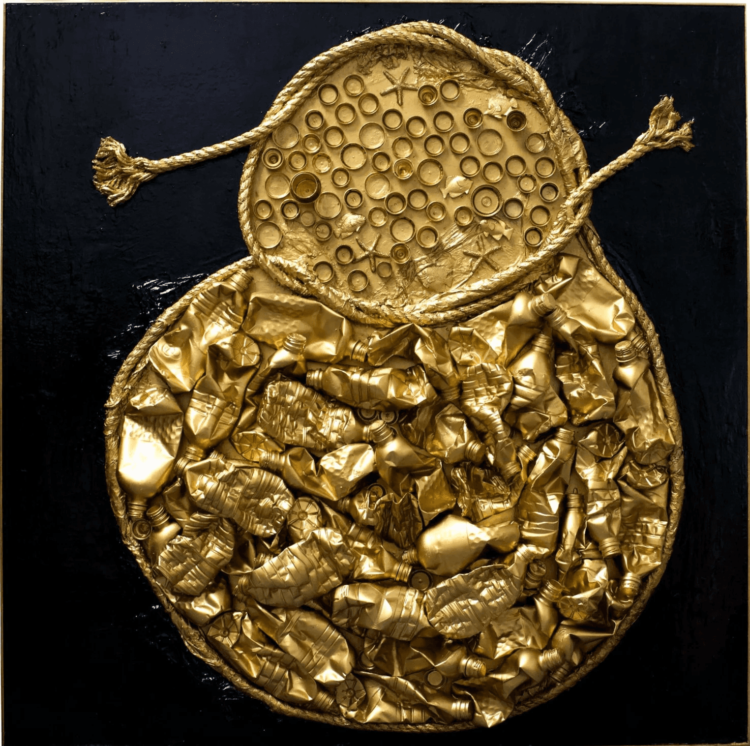 Medium: bitumen tar, plastic, wood, acrylic, resin