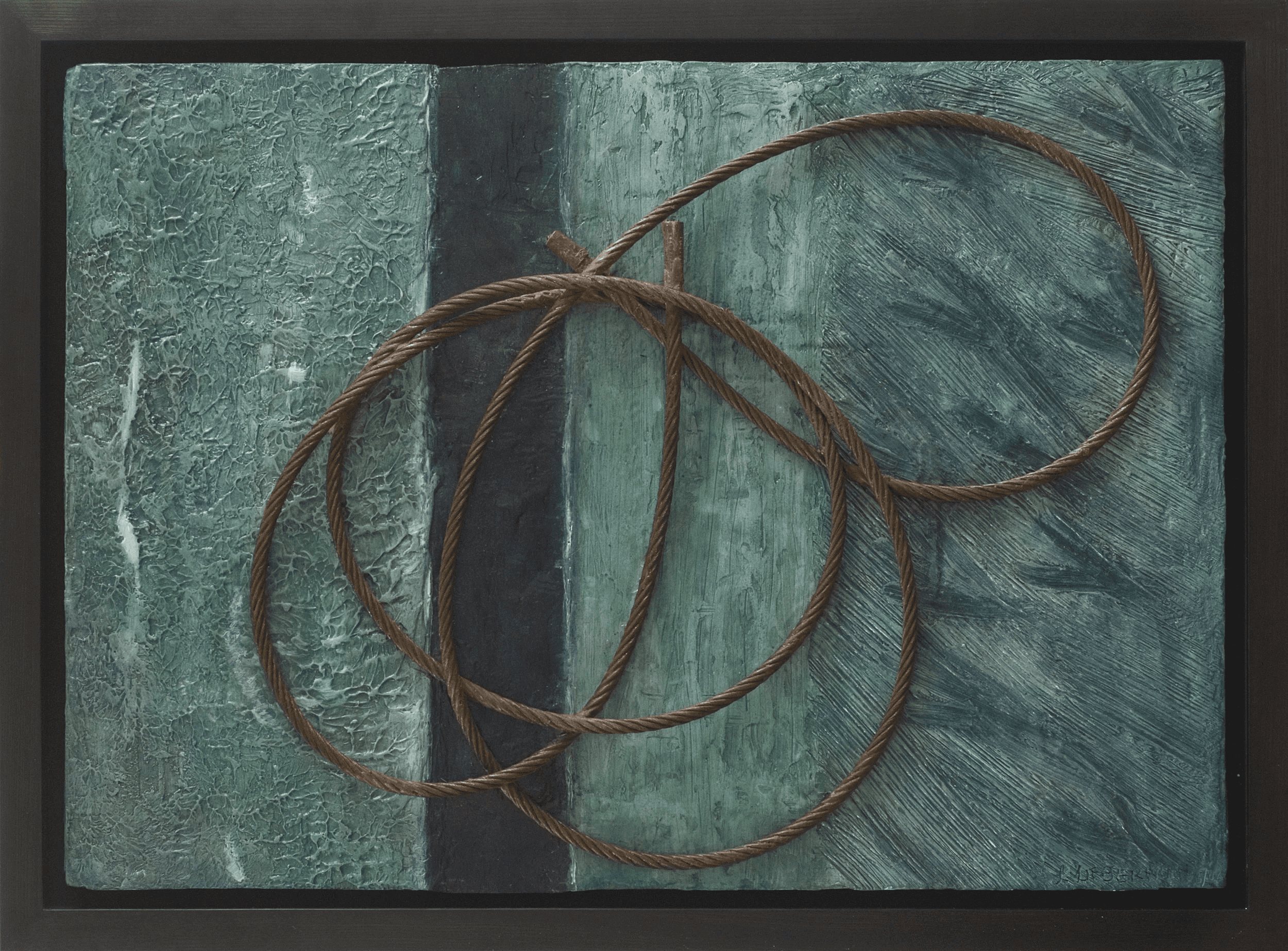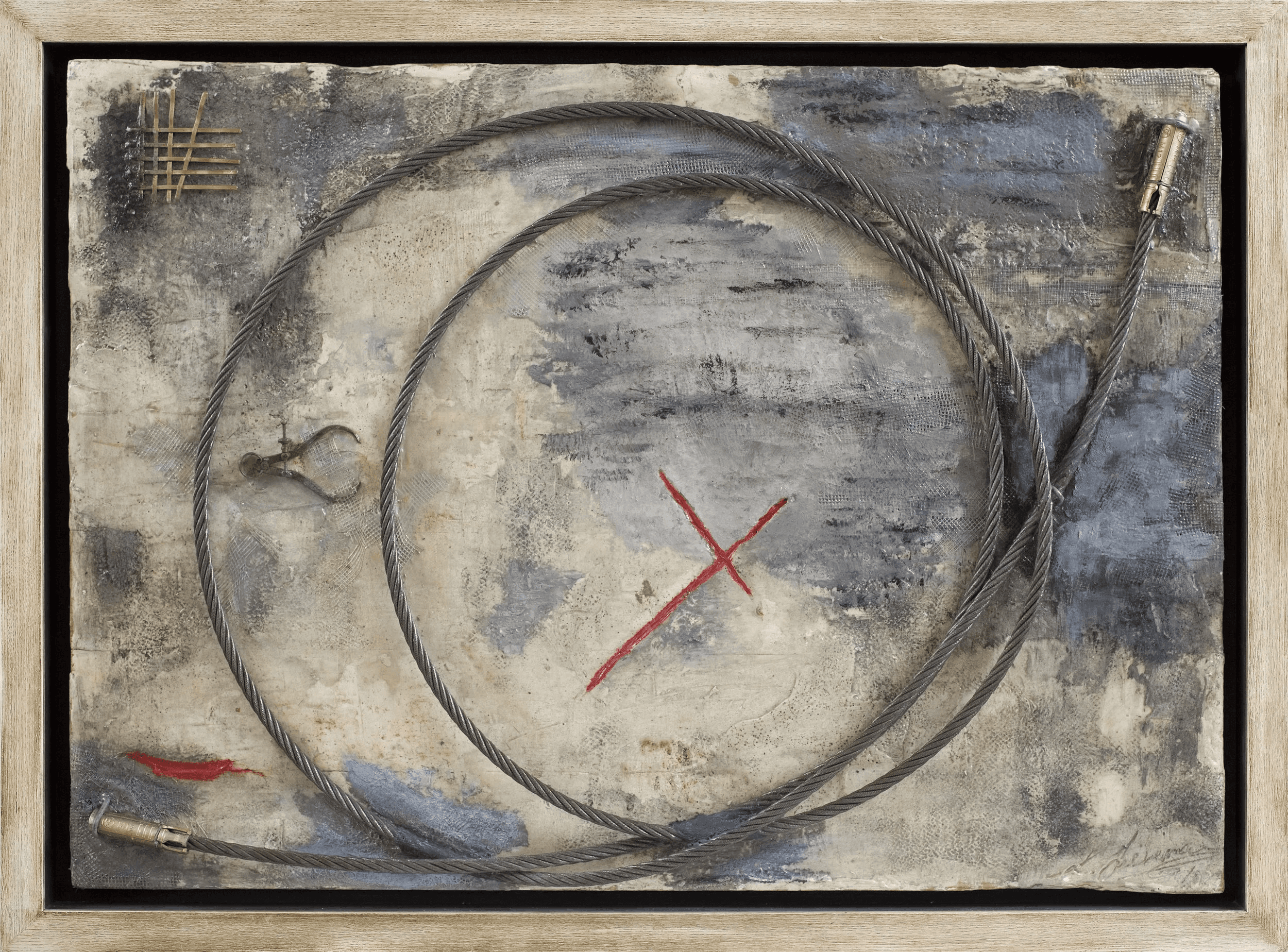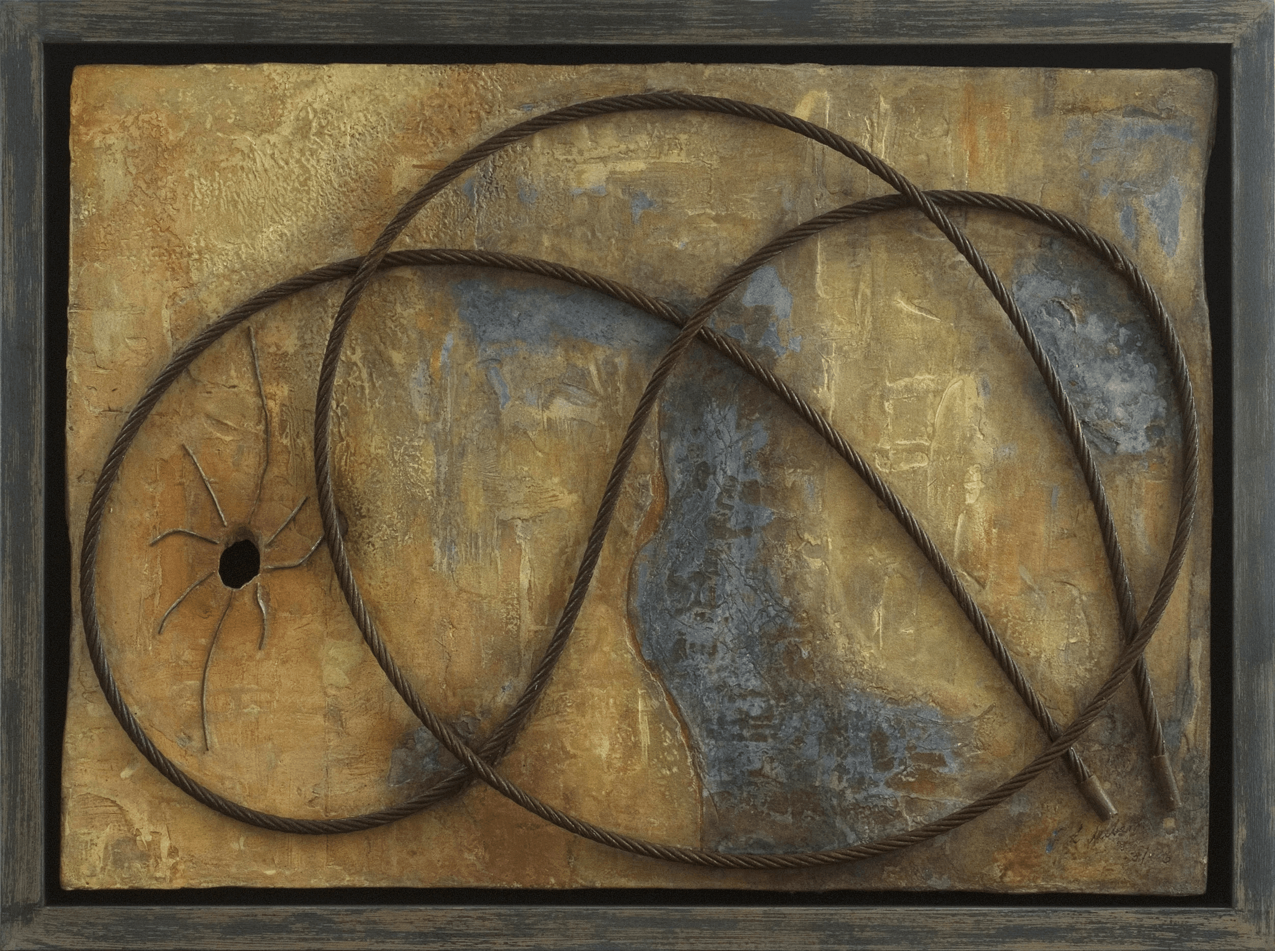 Medium: Plaster oil and steel and resin on board callipers, brass grid