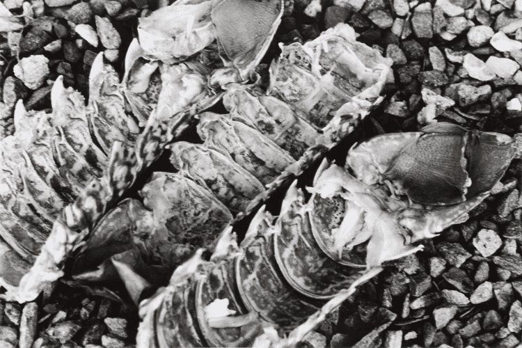 With their armored outer shells, crustaceans protect their vulnerable soft flesh - Lieberman juxtaposes them against exposed human nakedness, lowering the shields that we might raise spiritually or physically. Like us crustaceans can alter their appearance by inhabiting other forms – moving from one shell to another.