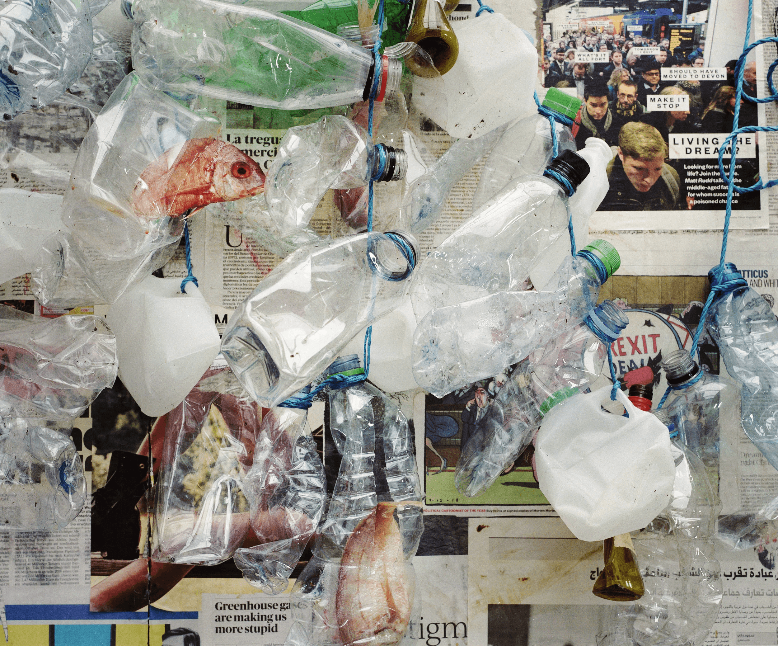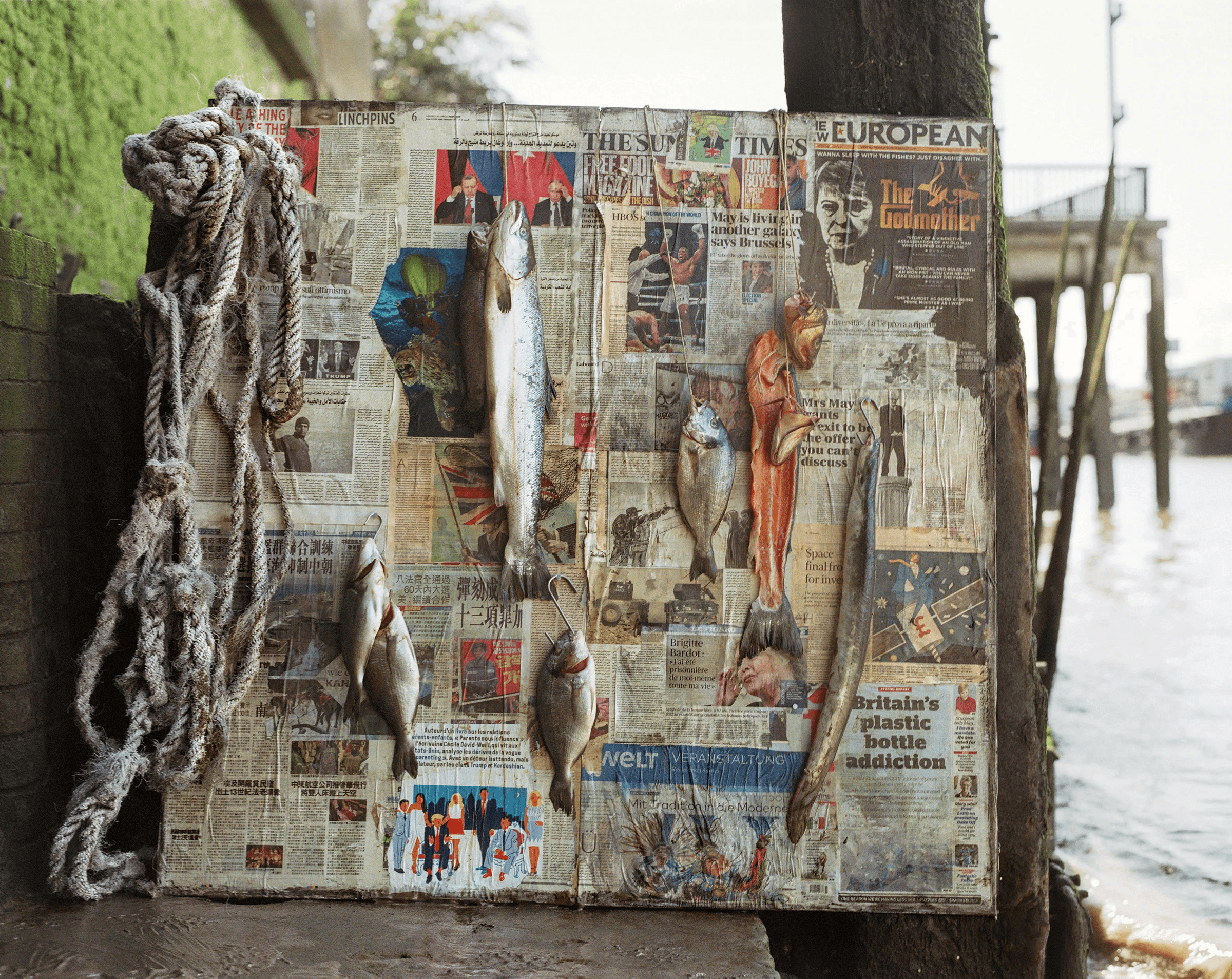 From this series of work now comes the Critical Mass Series, continuing to use the billboard in some of the new imagery but this time with newspapers from many countries around the world, but all stating in different languages the problem of plastic pollution, and damage that is affecting our seas, and oceans.